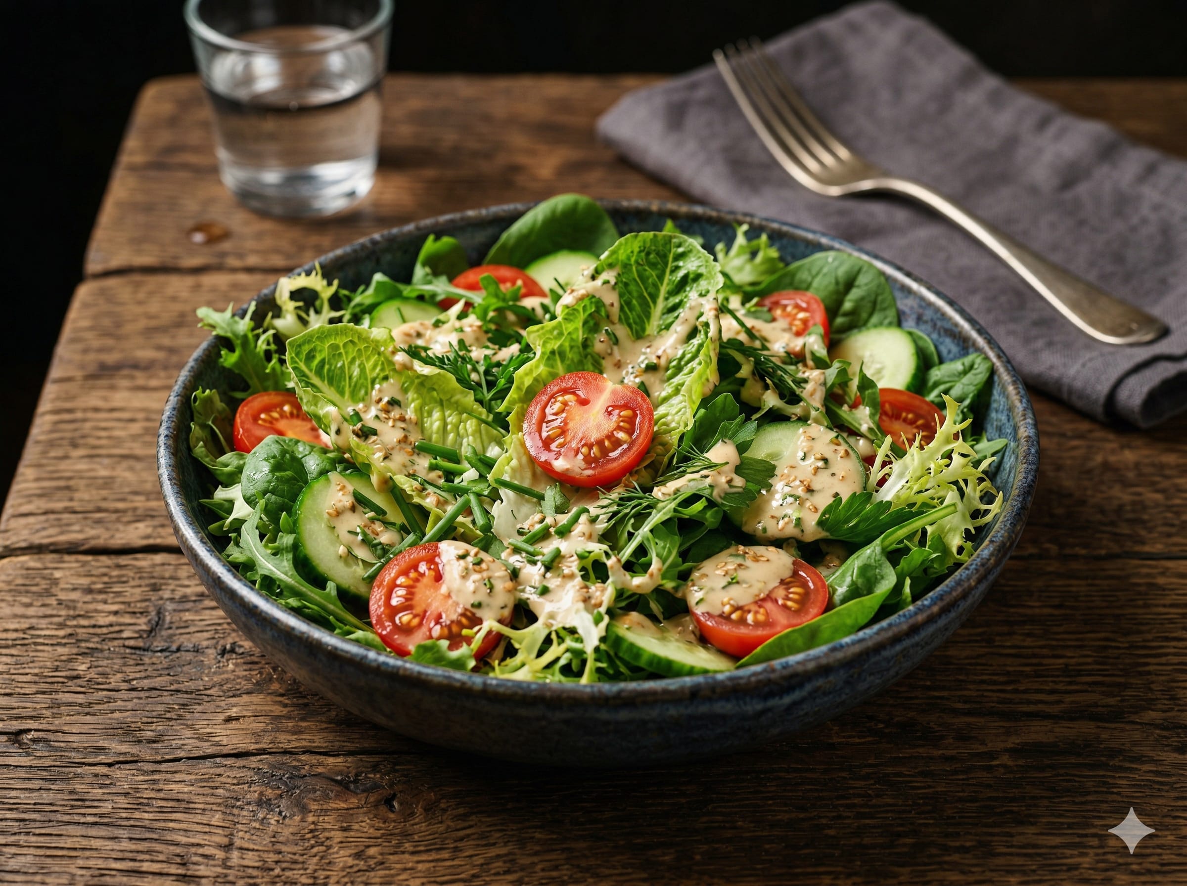 Salat rau cải tươi mát, trộn sốt mè rang thơm lừng, cân bằng dinh dưỡng
