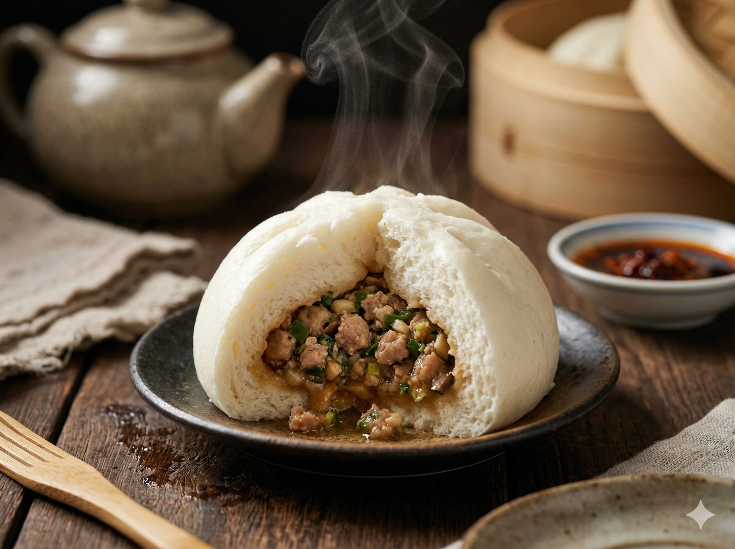 Bánh bao nhân thịt đậm đà, vỏ mềm xốp, hấp nóng ăn liền